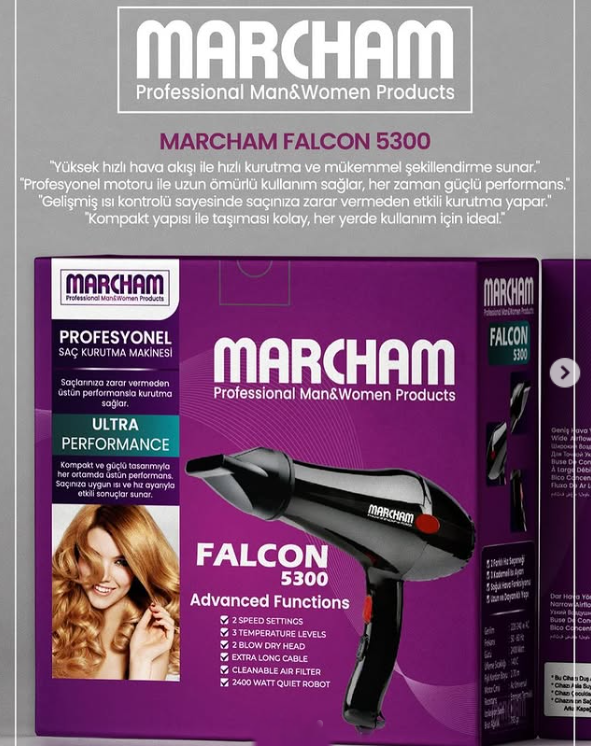 “Marcham Falcon 5300 Profosyonel 2200 Watt Fön Makinesi Siyah” için yorum yapan ilk kişi siz olun